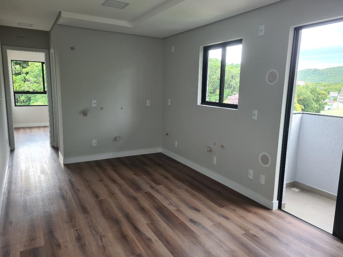 Apartamento Novo, Santo Antônio, Ultimo andar, 01 dormitório, banheiro, sala e cozinha integrada, sacada com churrasqueira, 1 vaga de garagem coberta